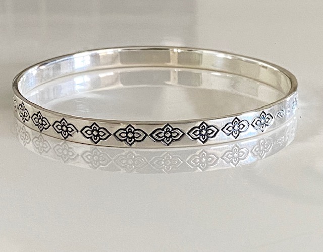 Sterling silver flower stamp pattern bangle