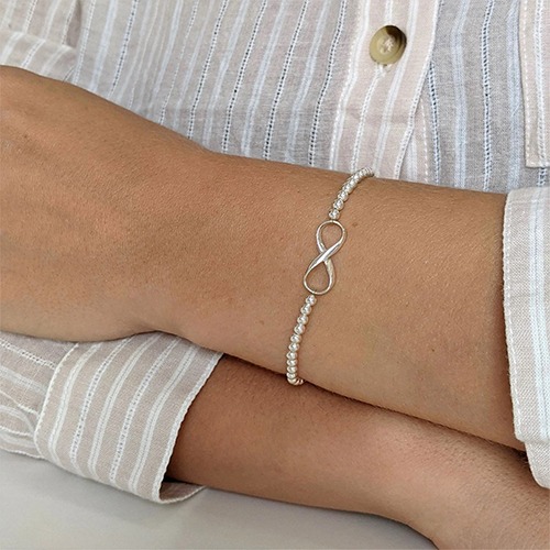 Sterling silver infinity symbol ball elastic bracelet quantity